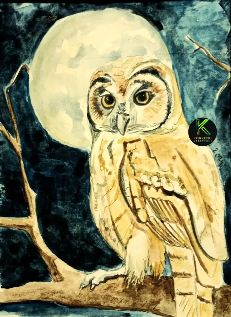З циклу «Крила значень – Сова» — акварель на папері 20x25 см, автор Korzenie Kreatywne